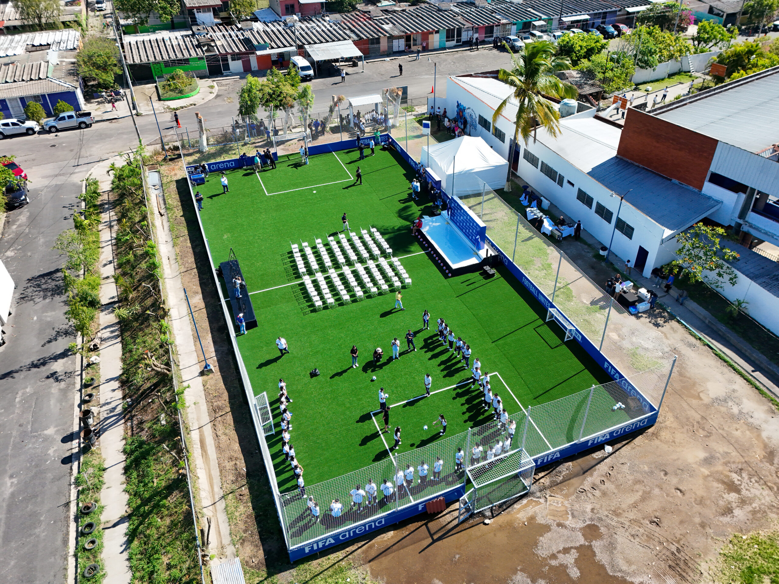 La iniciativa forma parte de un esfuerzo conjunto entre FIFA, FESFUT, el Ministerio de Educación e INDES, orientado a llevar espacios deportivos a centros escolares de todo El Salvador. Según se informó, próximamente se inaugurará una nueva cancha en el Complejo Educativo Río Zarco, en el departamento de Santa Ana.